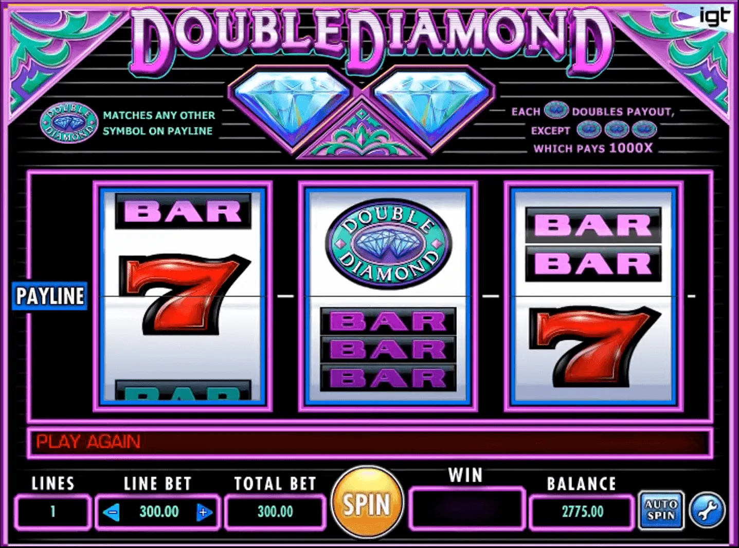 Double Diamond is a top choice for fans of classic-style slot games. This slot features three reels and one payline, with a look similar to Las Vegas slots from decades ago.