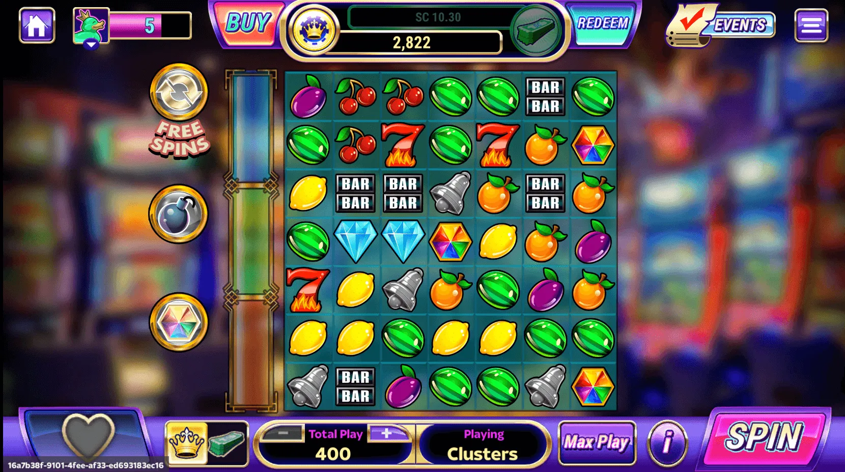 You need five or more symbols in a cluster to trigger a win, and the clusters help unlock the game’s free spin feature.