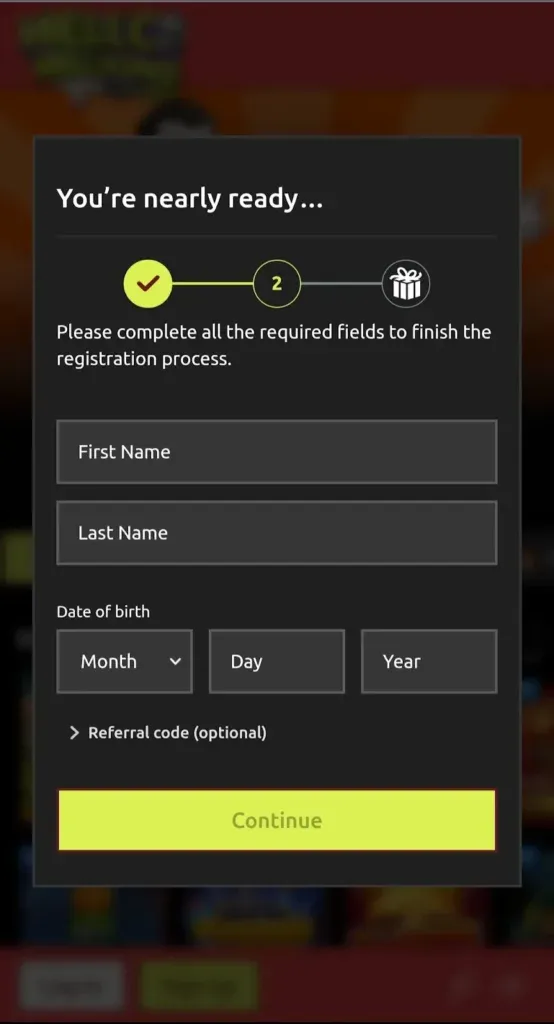 - Select “Sign-up,” which is a bright yellow button at the bottom of your screen.