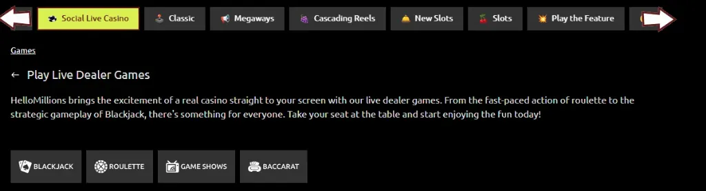 Live Casino Features at Hello Millions Casino