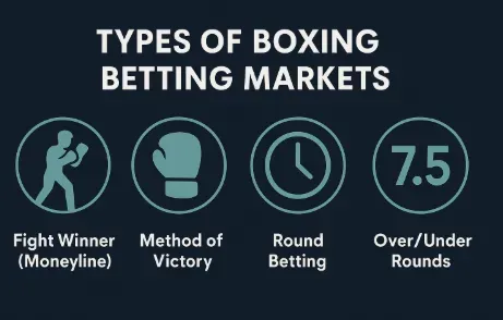 Boxing betting offers a wide range of markets suited to both casual and analytical bettors. The most common boxing betting options for UK audiences include: