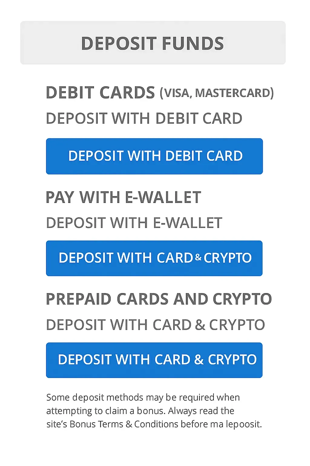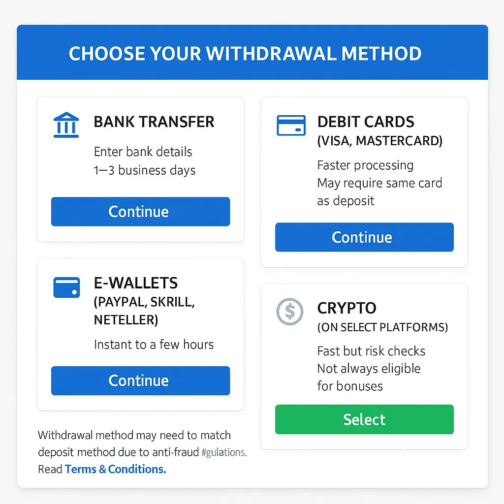 - E-wallets (PayPal, Skrill, Neteller)