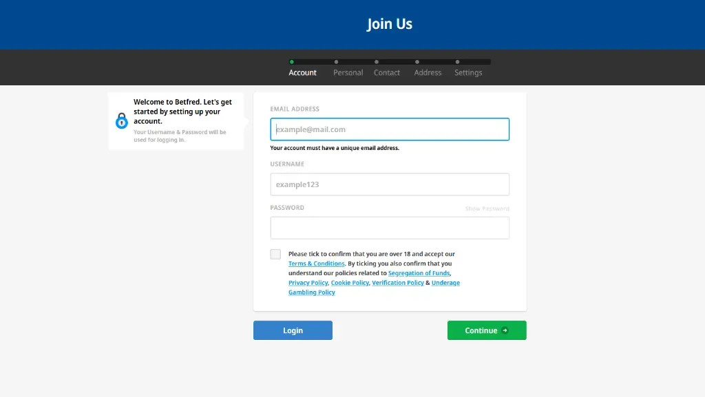 Click on the “Sign Up” or “Join Now” button in the top-right corner. Here, bettors will be asked to provide standard personal information: