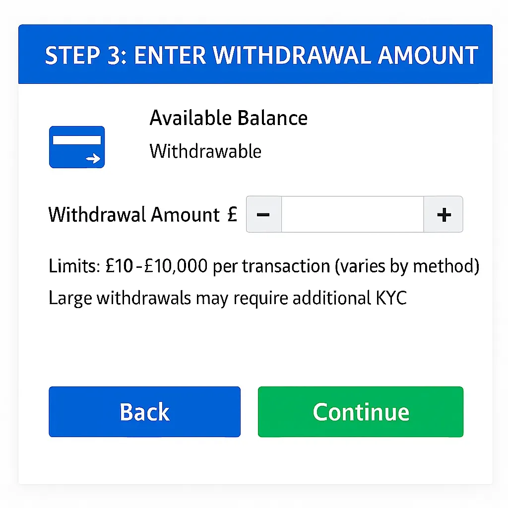 Once verified, users must head to the cashier or wallet section to deposit funds. Most UK-facing sites accept: