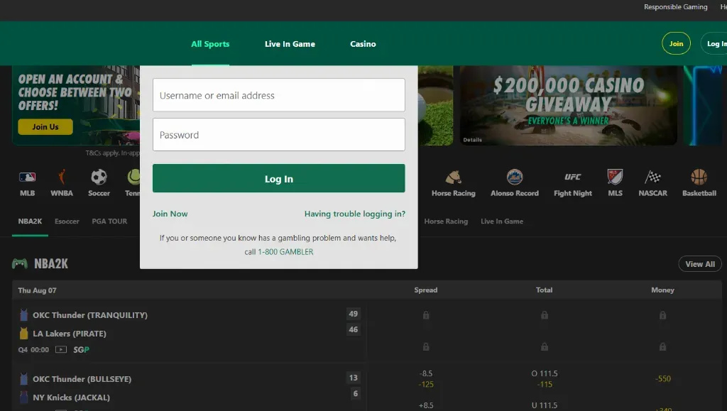The Sign Up or Join Now button, usually at the top right of the page, allows bettors to create a new account by filling in personal details like full name, date of birth, residential address, email, and mobile number. Most sportsbooks also ask to create a username and secure password at this stage. The information must match official documents so that they can be verified later.